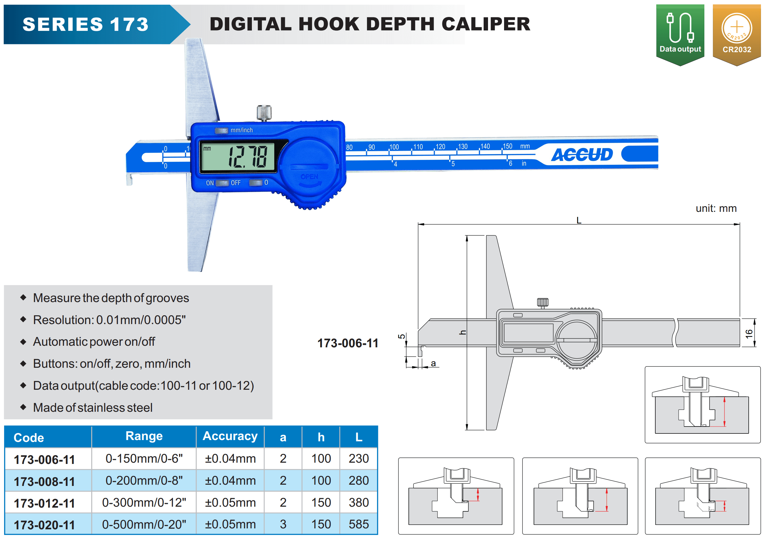 SERIES 173 Applications Digital Hook Depth Caliper
