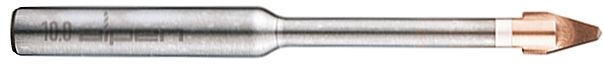 For extremely hard porcelain/gres tiles up to Mohs/Ritz hardness 9 and glass. No cooling required. Please note max. spindle speed 200 rpm. Not suitable for percussion drilling. Shank DIN 3126, Form E6.3, ISO 1173