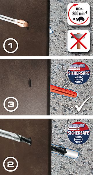 • Drill dowel in masonry