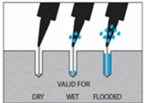 Flooded hole: this is a hole in which an anchor is installed in conditions of total humidity, that is, the hole is full of water (not to be confused with a submerged hole). This usually occurs when the installation is carried out during heavy rain or after a day of intense rain, the installer may find the hole partially or completely full of water.