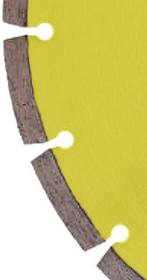 The segmented diamond blade is also known as a dry cut blade and is mostly used on dry cutting applications. Air flow cools the blade by making use of segments and cut-outs (gullets) in the body of the blade to dissipate heat.
