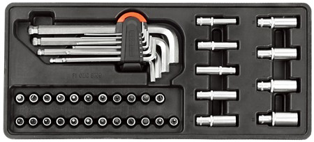 | Allen keys with ball ends | 1.5, 2, 2.5, 3, 4, 5, 6, 8, 10, 12 mm |