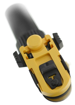 a built-in blade cover for safety, and a plastic guard to cover the pivot spike