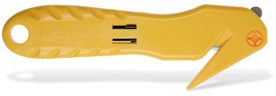 The SK-10 featuring a beak-shaped guide for a 'scoop-cut' cuts down shrink wraps,