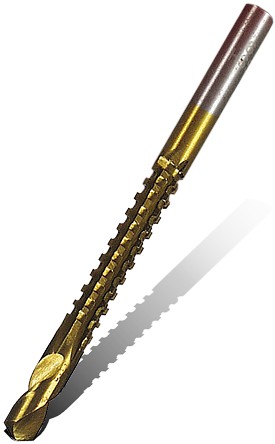 Turn your electric drill into a high-speed drill saw. The drill saw is made from HSS (hi-speed steel) coated with Titanium nitride for superior cutting speed and edge retention.