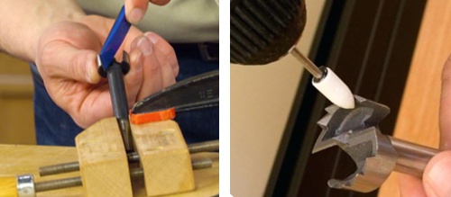 Never sharpen a Forstner bit on the outside circumference as it will change the bit's size.