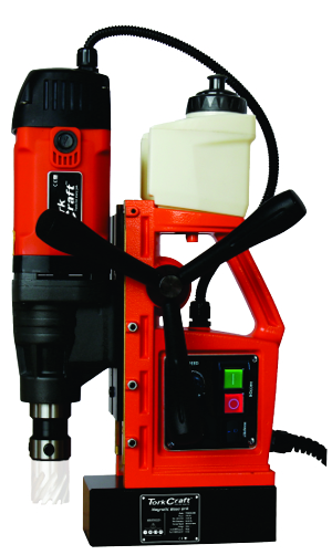 The magnetic base drill is fitted on a strong dual-coil magnet with a maximum core drill capacity of 50mm. The speed is adjustable electronically between 100-810 rpm.