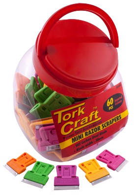 The candy jar contains a total of 60 mini razor scrapers. The blades are manufactured from carbon steel with a width of 38mm.