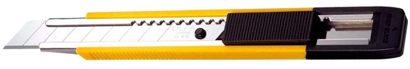 Medium size cutter MT-1 with a 12.5mm-wide and 0.45mm-thick blade. For both left- and right-handed users. Featuring Auto-Lock system and a pocket clip/blade snapper. The main body is made of 100% recycled resin.