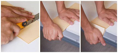 - Place the plastic sheet, groove-side up, over a hard edge, such as a tabletop, with the groove slightly beyond the edge.