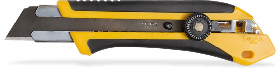 This extra heavy-duty knife is part of the X OLFA Design Series™, a powerful line of anti-slip grip cutting tools combining exceptional performance with innovation. Features a ratchet lock, cushion grip for maximum comfort and control, heavy gauge stainless steel blade channel that holds blade tight and chemical resistant handle for easy cleaning. Easy tool-free blade change for convenience. The blades made from high quality carbon tool steel are produced using OLFA precise multi-step production process for unparalleled sharpness and superior edge retention. Long lasting, durable snap-off blades - a new sharp edge with each snap. Uses HB replacement blades.