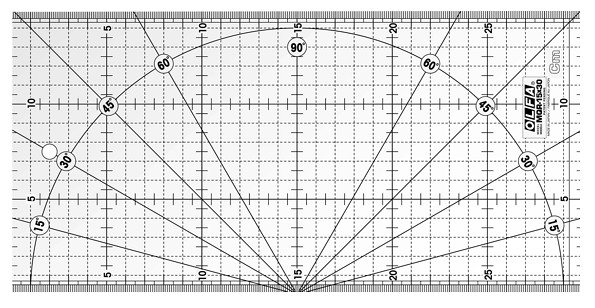 The rulers allow the user to make precise measurements and cutting angles 15 °, 30 °, 45 °, 60 ° and 90 ° during sewing and quilting applications. Accommodates both right- and left-handed users.