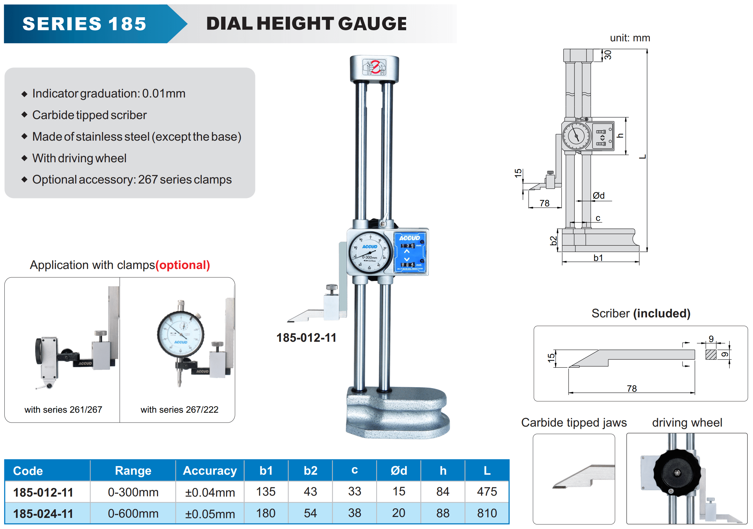 The Two-Column Dial Height Gauge is a precision measuring tool designed for high-accuracy height measurements, featuring a robust dual-column design for enhanced stability and accuracy. Unlike digital models, this height gauge uses a mechanical dial indicator for precise and reliable readings, making it ideal for professionals in machining, manufacturing, automotive, aerospace, and quality control who need durability and mechanical precision. The dual-column structure ensures minimal deflection, allowing for consistent results when measuring tall or heavy objects.