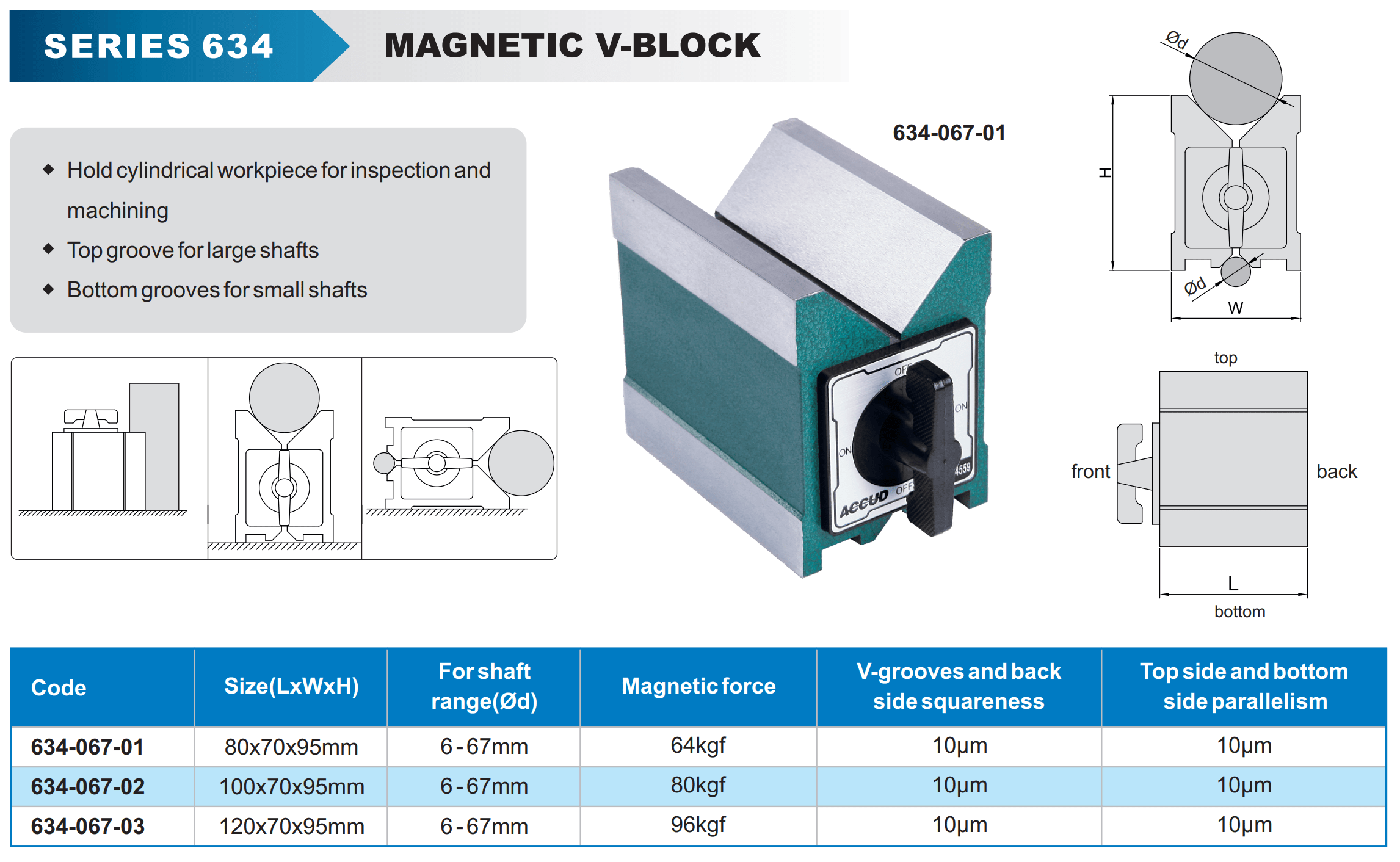 • Ease of Use: The on/off switch for the magnetic base allows for easy positioning and removal of the V-block, enhancing workflow efficiency.