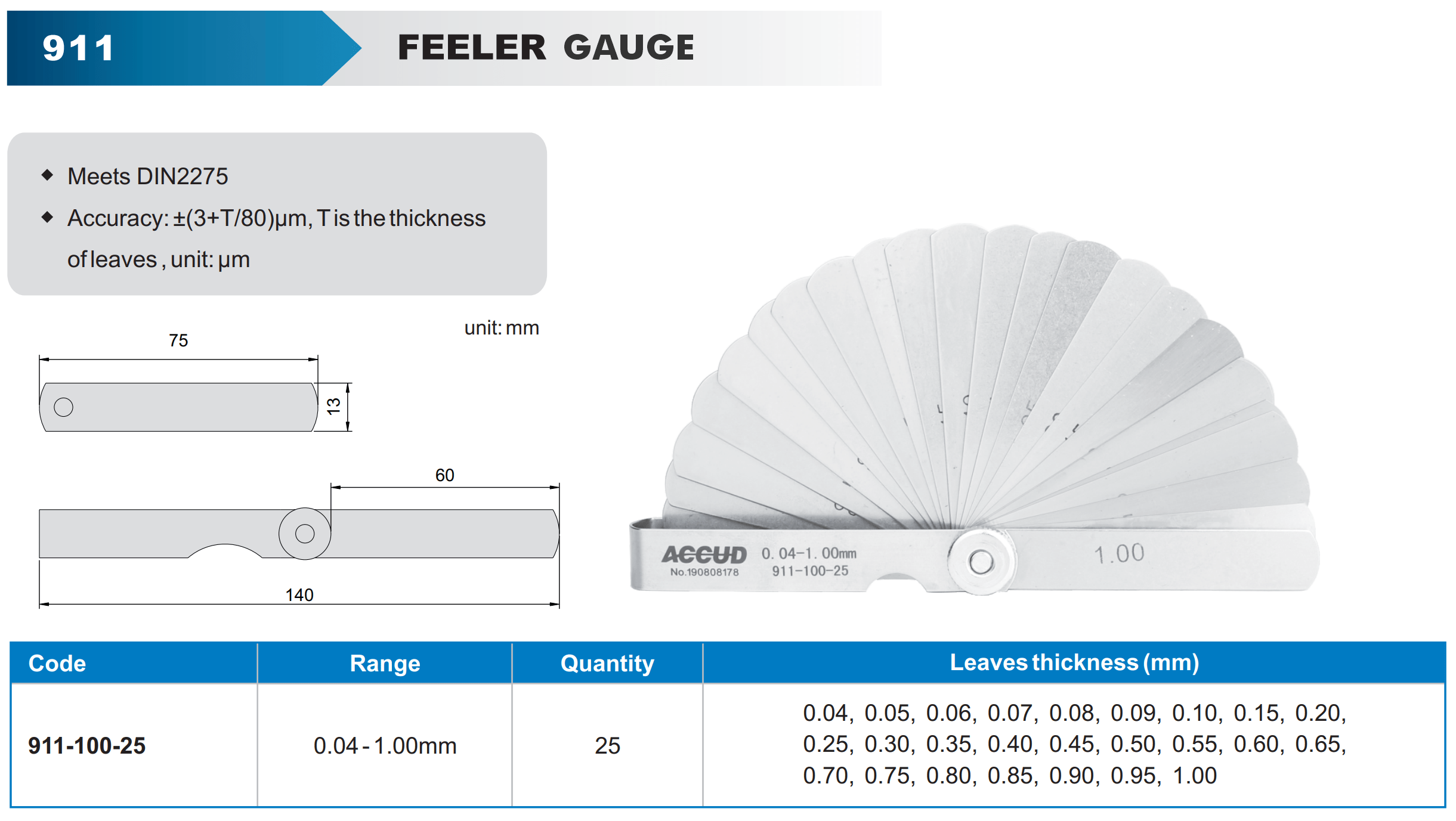 - High Precision: The thickness of each blade is precisely manufactured, allowing for accurate measurement of small gaps or clearances.