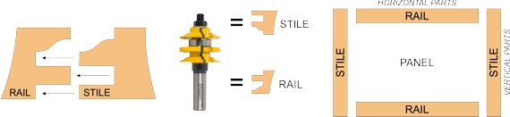The cutter contains both the rail and stile cutters to create the frame of a cabinet door with an ogee profile.