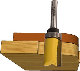 as the cutting edges rout the work piece, forming an exact duplicate of the template.