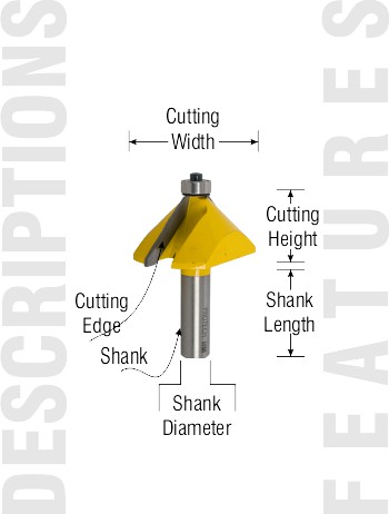 This bevel cutter is a 2 flute, carbide tipped router bit with totally enclosed ball bearing guide. It is ideal for bevelling and decorative edges. This router bit is also used for producing a 45° edge for mitres, especially where extreme accuracy is required. A great product for making boxes.
