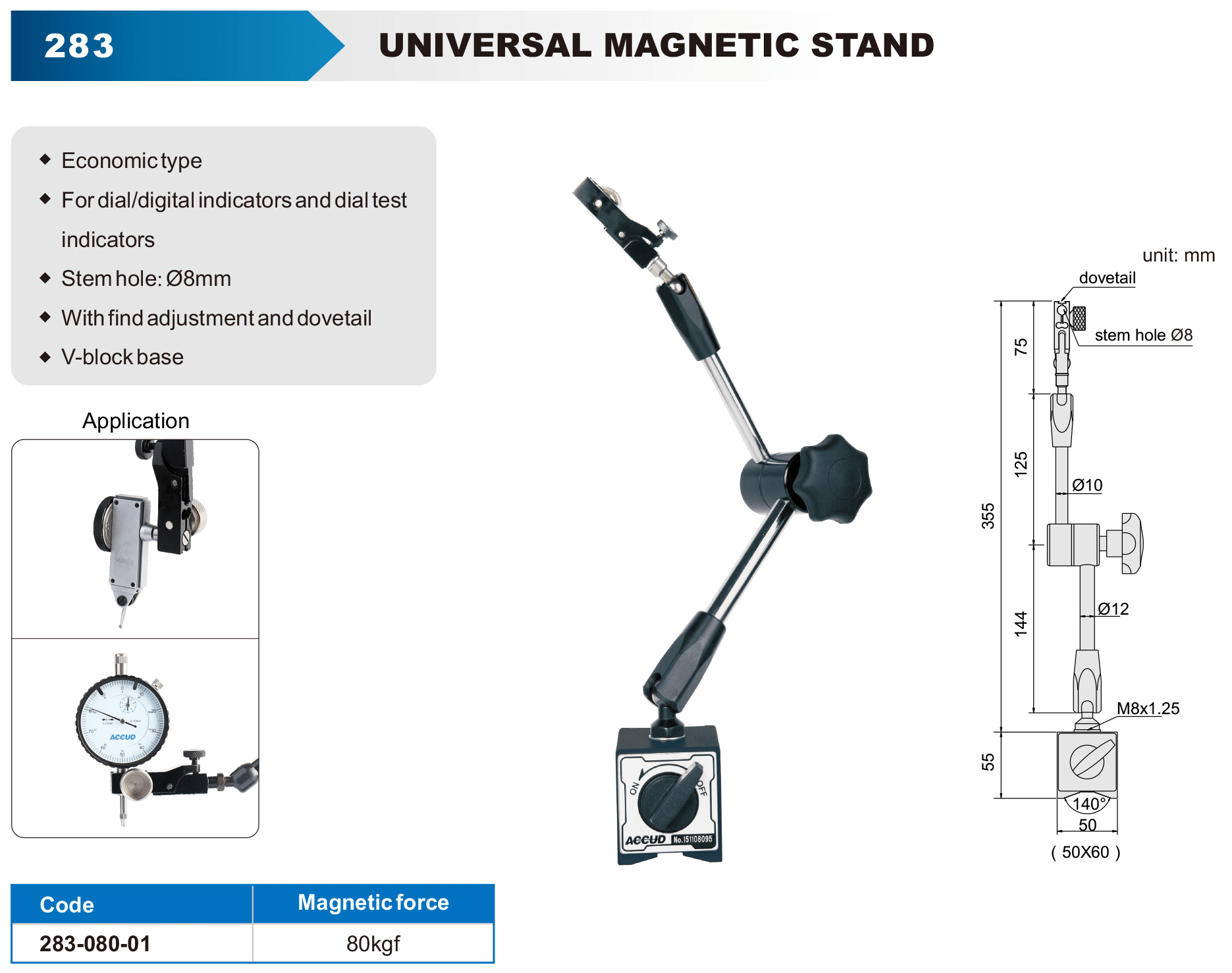 Universal Magnetic Stand for dial/digital indicator: 80kgf with fine adjustment