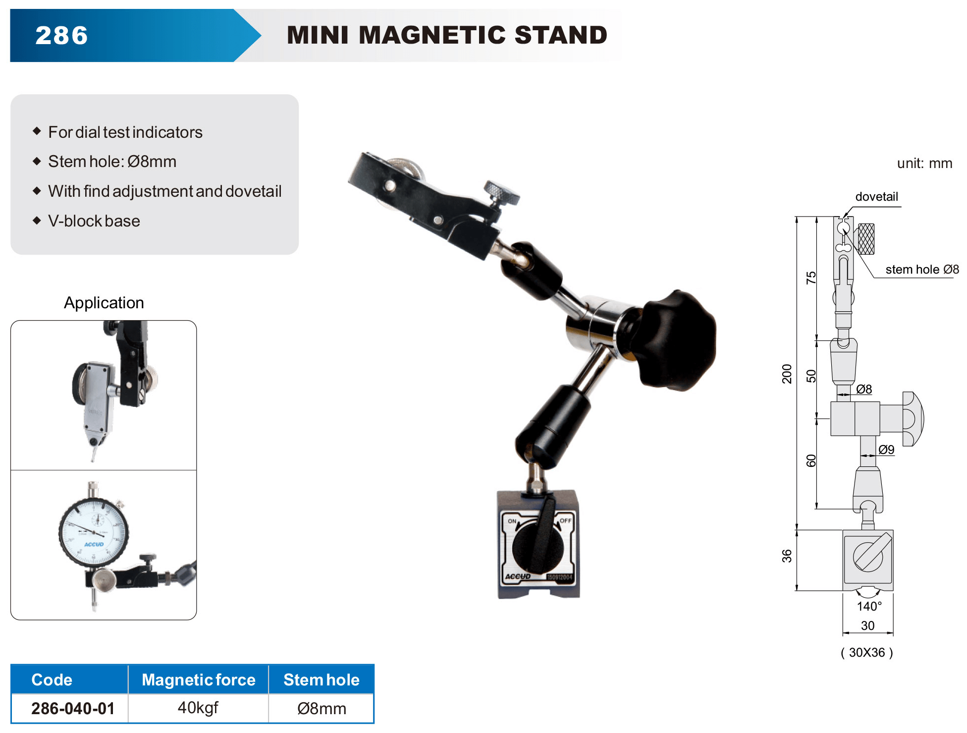 Universal Magnetic Stand for dial/digital indicator: 40kgf with fine adjustment