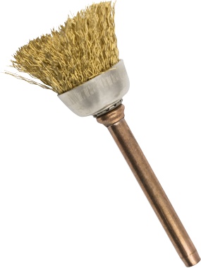 Deep-clean recessed areas and curved surfaces with the 12.7mm Mini Brass Cup Brush, a specialized tool designed for gentle yet effective scrubbing. The cup shape allows the bristles to flare outward slightly when in use, making it the perfect geometry for cleaning flat-bottomed depressions, internal corners, and shallow pits. Because brass is naturally softer than steel, this brush is ideal for removing tarnish, light corrosion, and dirt from delicate workpieces without gouging or marring the underlying material.